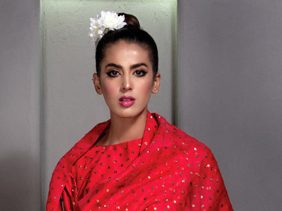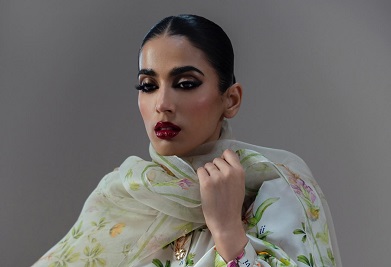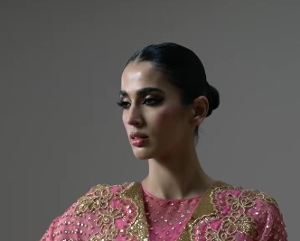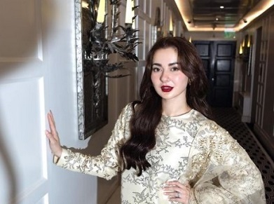 The famous Pakistani actress Hania Aamir recently adorned herself in a stunning cream and gold block-printed & embellished raw silk