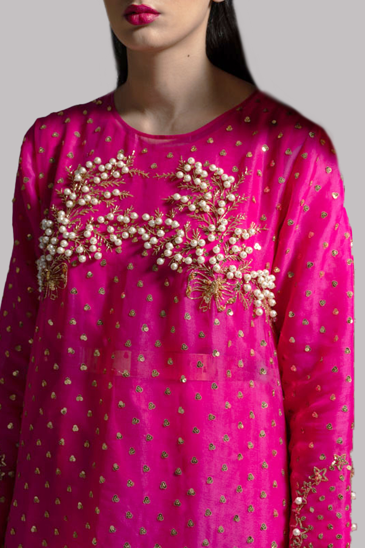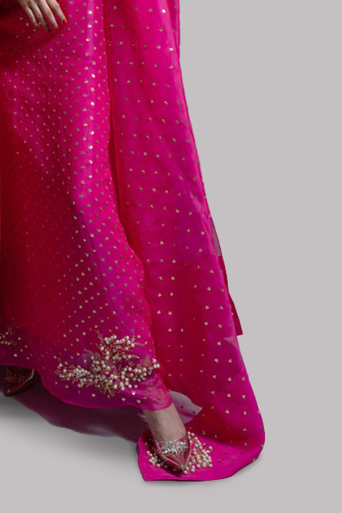 A richly embellished Beetroot Purple Maxi, complemented by an ethereal organza dupatta for effortless evening elegance.