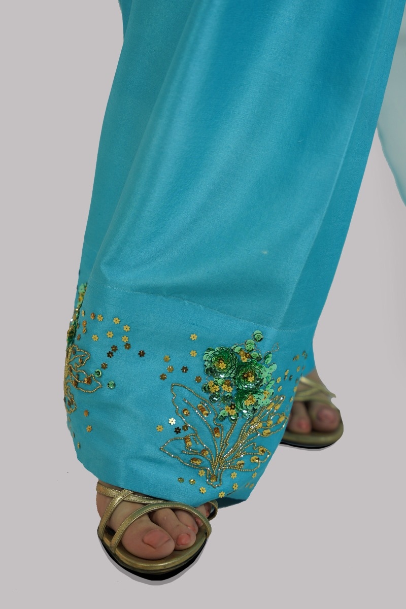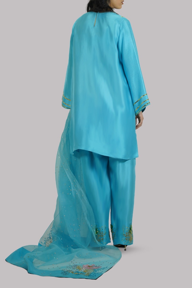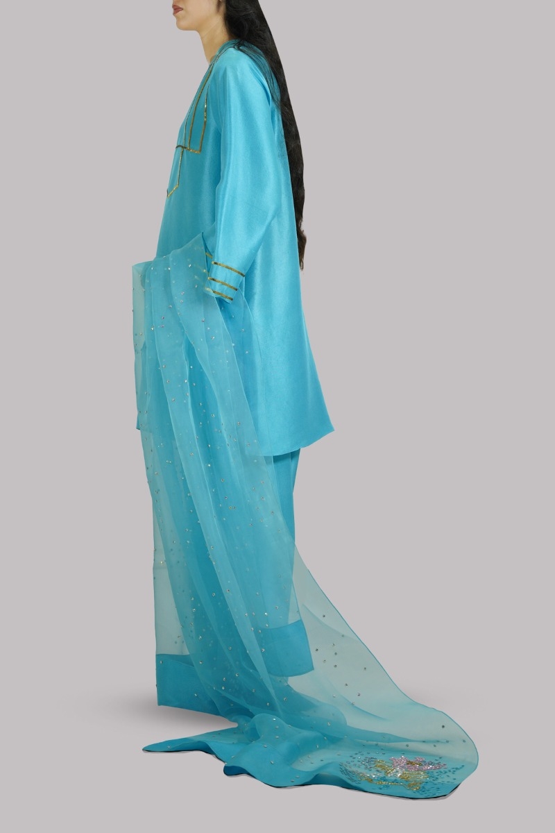 Blue Atoll Embellished Raw Silk Set