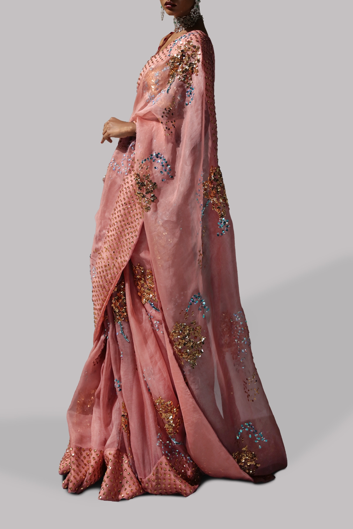 Dusty Pink Embellished Organza Sari