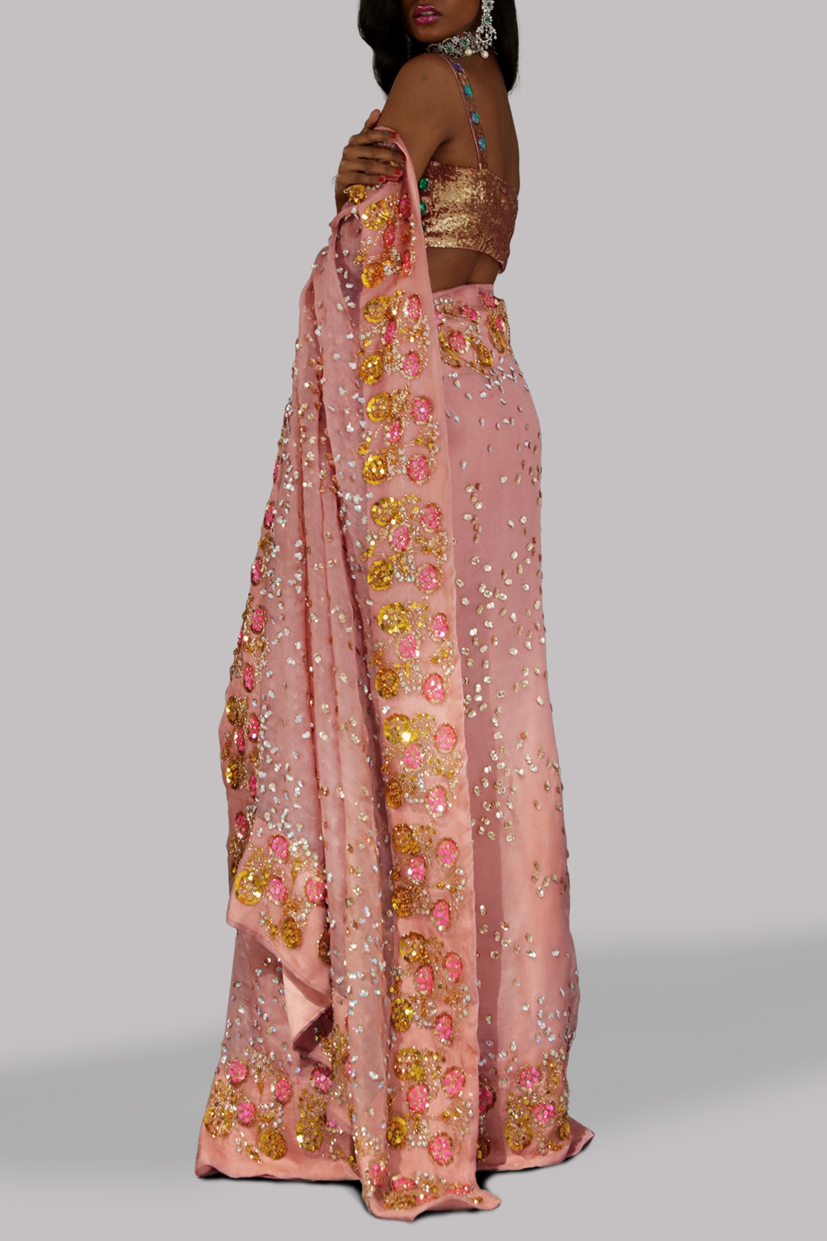 Dusty Pink Embellished Organza Sari