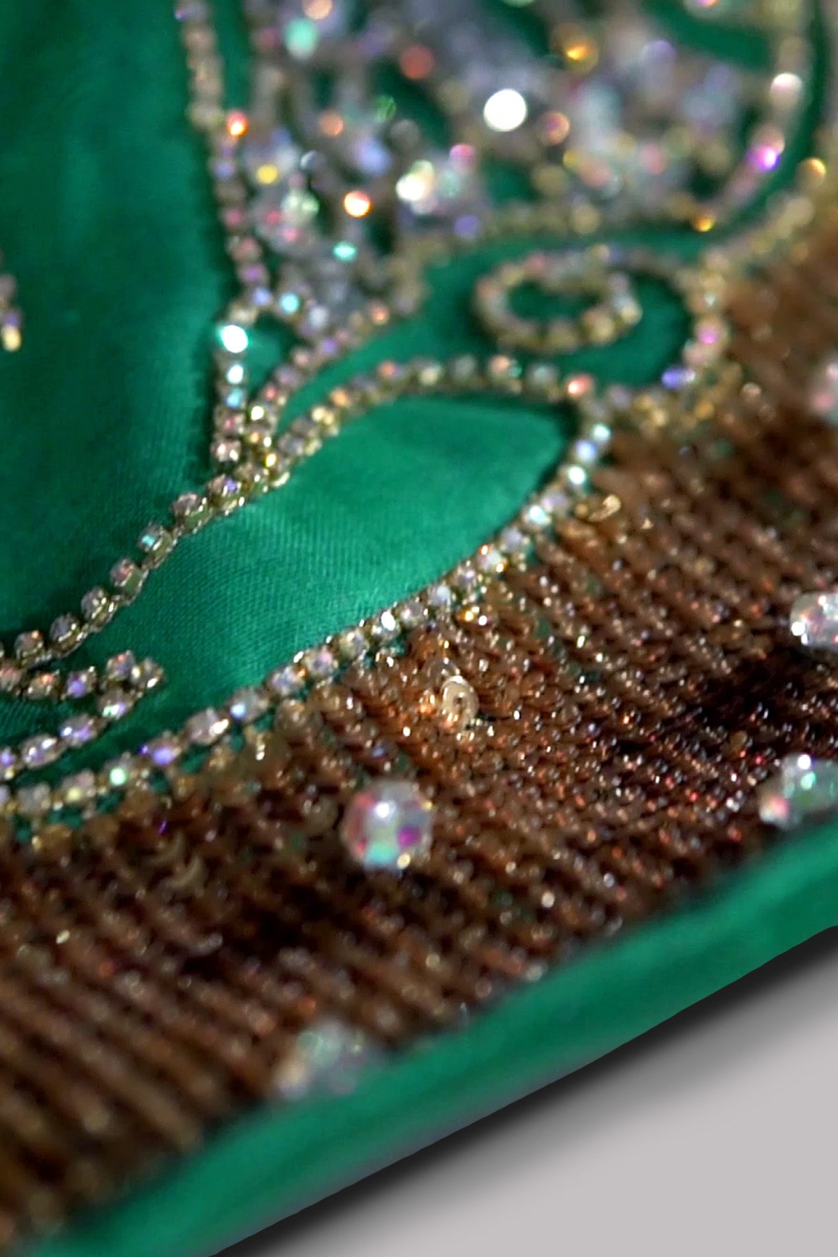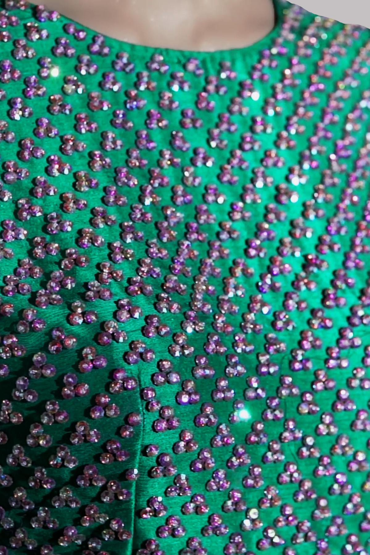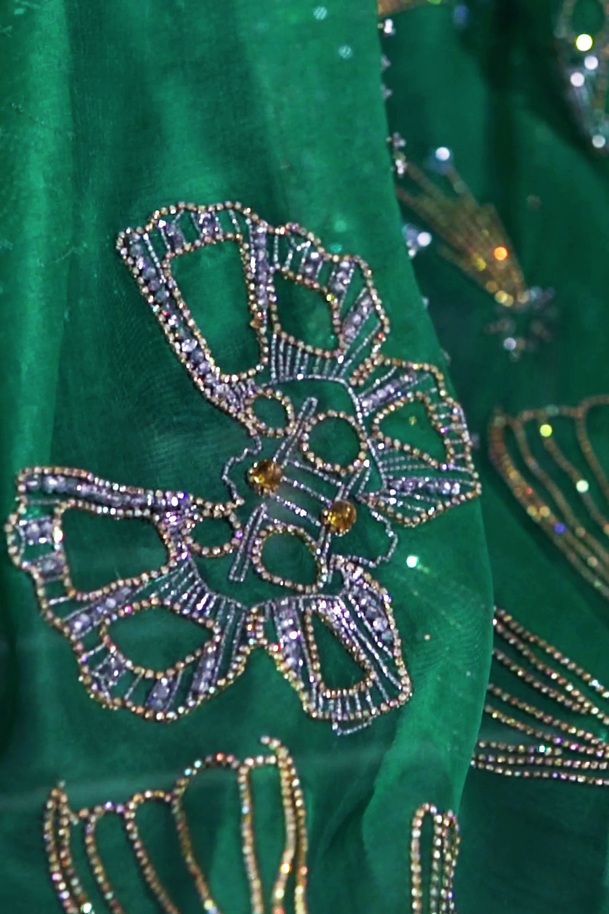 Emerald Green hand embellished organza sari with matching embellished dupion cropped blouse. Hand embellished with freshwater pearls, glittering sequins and gold beads. This sensational sari is no exception. Sari has an adjustable waist ties to ensure the most flattering fit. Silk petticoat included.