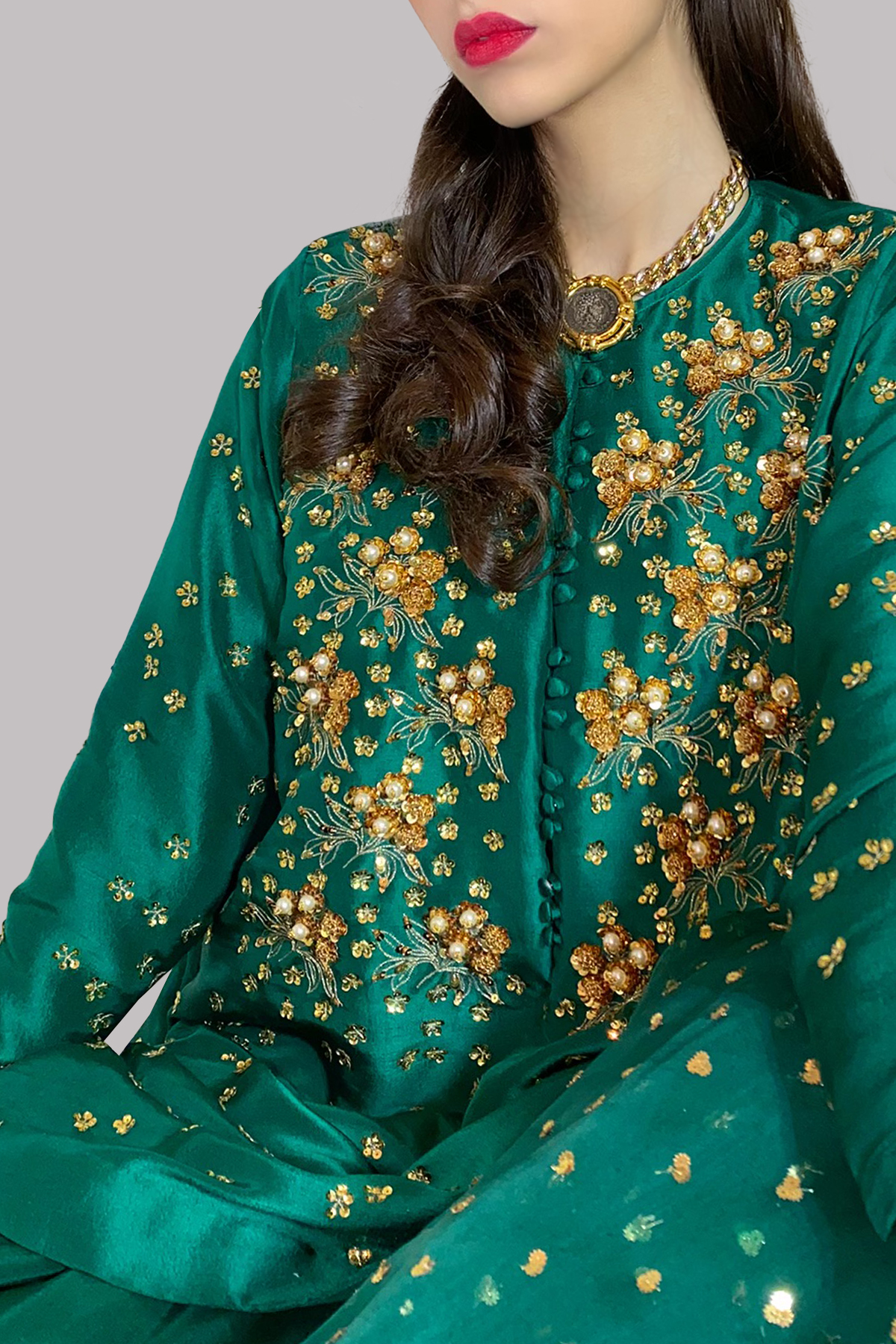 Evergreen Embellished Raw Silk Set  240,000