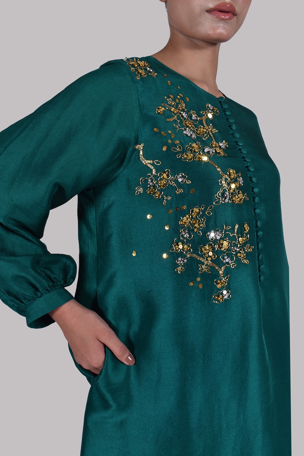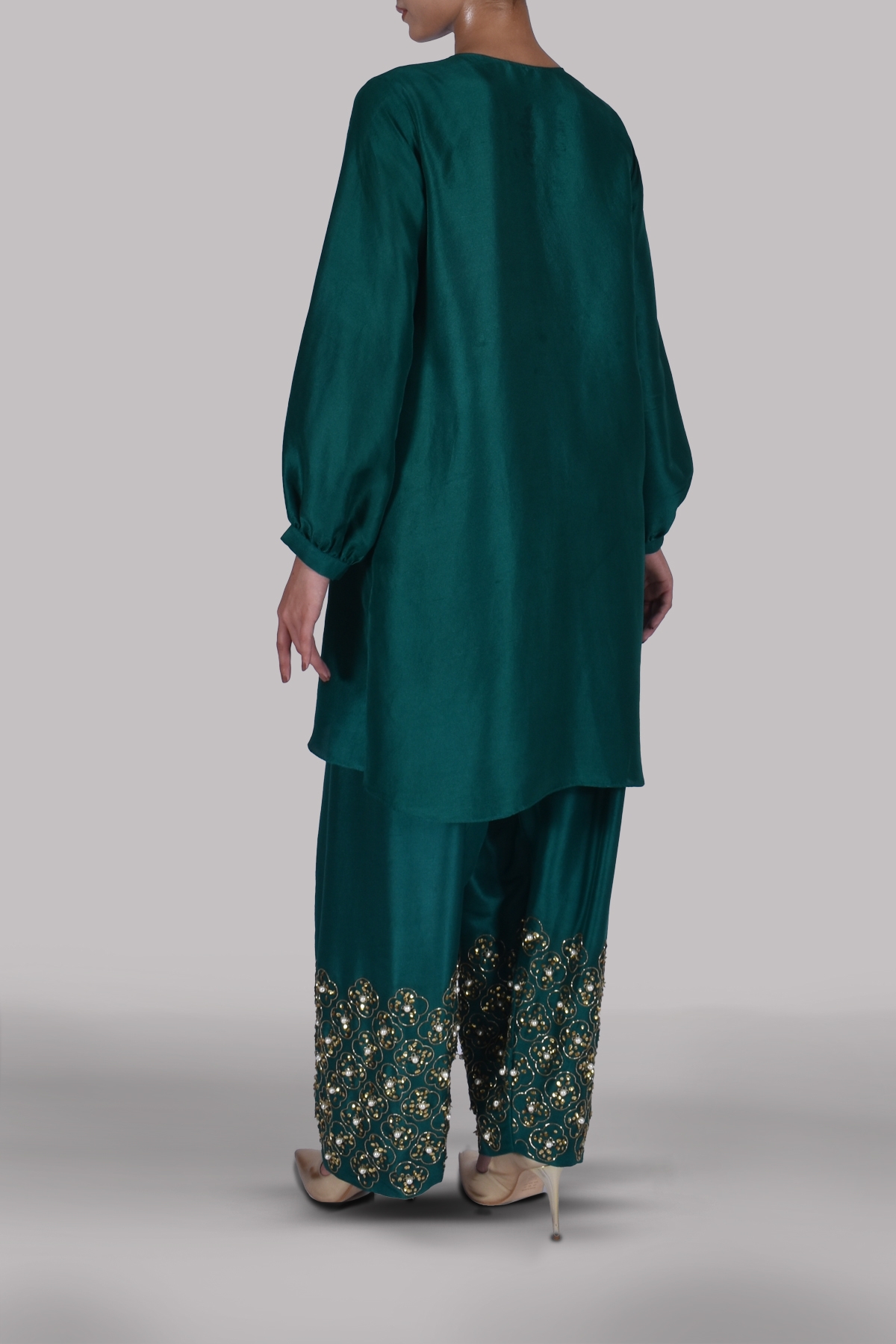 Galapagos Green Embellished Raw Silk Set