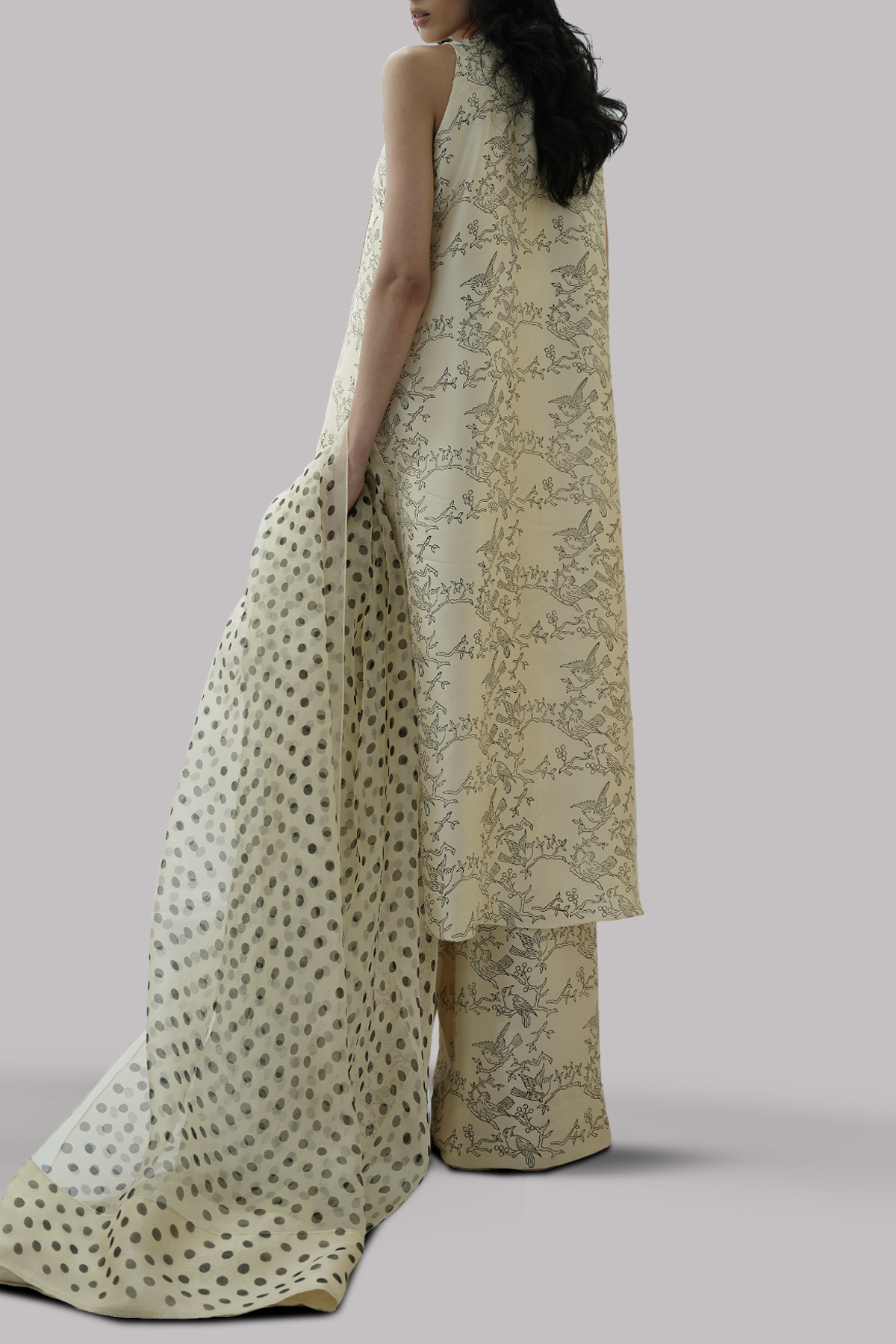 • We have provided the top’s measurements below. The pants are 42″ long. The dupatta is 3 yards and finished with a raw silk edging.