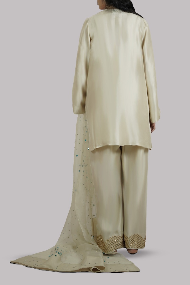 Lamb’s Wool Embellished Raw Silk Set