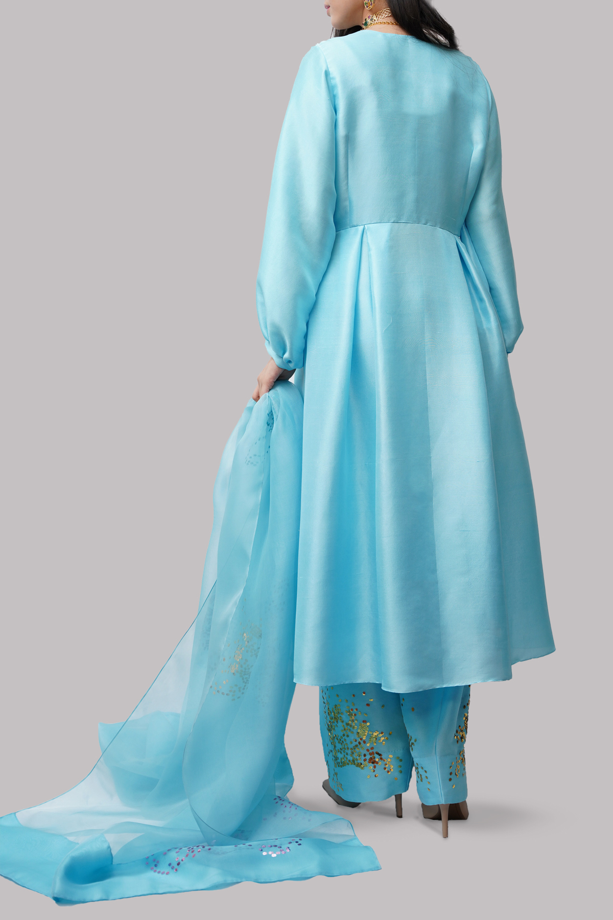 Tropical Breeze Blue Embellished Raw Silk Set